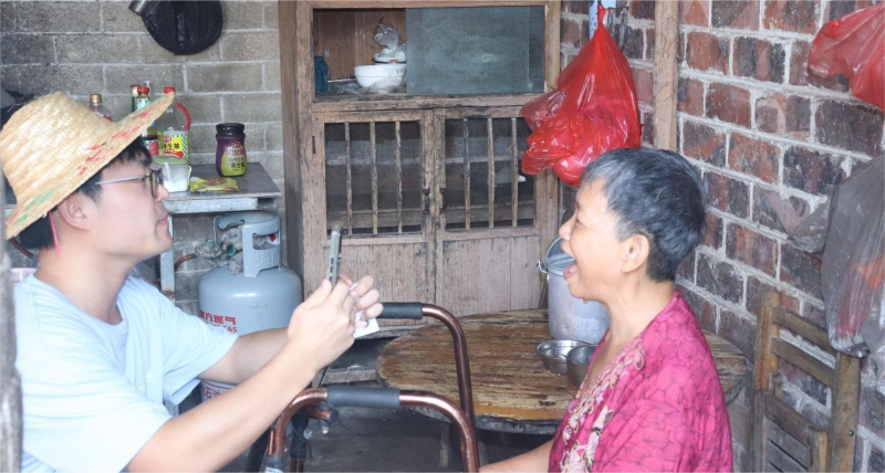 实践团成员们了解到岜盆乡那坡村的老人存在养老待遇资格认证的困难,便在村干部的带领下主动入户帮助行动不便、卧病在床的老人进行其相关操作。他们耐心地为老人进行认证的流程,帮助老人完成身份验证、信息填写等步骤。
