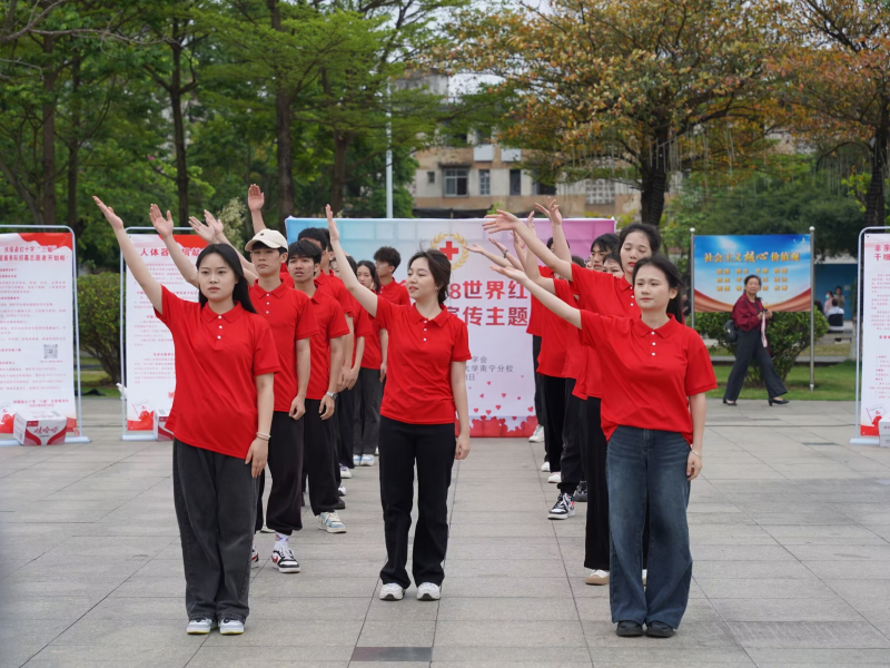 活动现场,红十字会工作人员与我校学子摆放宣传展板,向过往群众发放宣传材料,开展“三献”知识问答等方式,宣传红十字精神和无偿献血、捐献造血干细胞、捐献人体器官的相关知识,并举办以“关爱生命 救在身边”为主题的应急救护知识培训活动,通过专业人员培训与群众实际操作相结合,让更多群众了解和掌握应急救护知识技能。现场还开展了无偿献血、捐献造血干细胞等活动。当天,来自我校的青年志愿者们一起表演《青苹果乐园》快闪舞蹈、唱响《红动中国》《和你一样》等歌曲,通过群众喜闻乐见的公益快闪活动宣传“三献”工作,呼吁大家弘扬“人道、博爱、奉献”的红十字精神,倡导“人人参与公益”的理念。