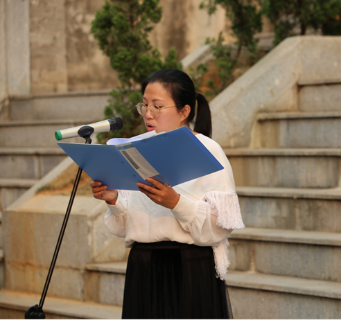 活动现场,分校团委黄薇薇书记以微团课的形式,讲授纪念松根岭革命烈士红色事迹,大力弘扬以爱国主义为核心的伟大民族精神,着力突出仪式教育的感召作用。