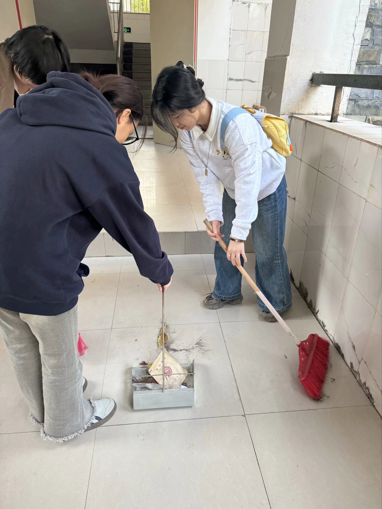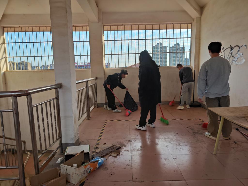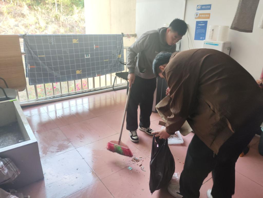 活动开始前,由学生第二党支部副书记陈小龙领学习近平总书记在促进高质量充分就业中的重要讲话精神,旨在引导与会成员端正就业心态,明确就业目标,自信地面对就业市场的挑战,找到适合自己的职业道路。随后,全体成员手持扫帚、垃圾袋等工具,分组深入不同的宿舍楼栋,从楼梯、走廊到洗衣机等公共区域,开展清扫活动。经过全体成员的共同努力,宿舍区走廊、楼道干净整洁,公共区域井然有序。参与活动的入党积极分子表示:这次活动让他们深刻感受到了党员同志的先锋模范作用,也更加珍惜自己的宿舍环境。