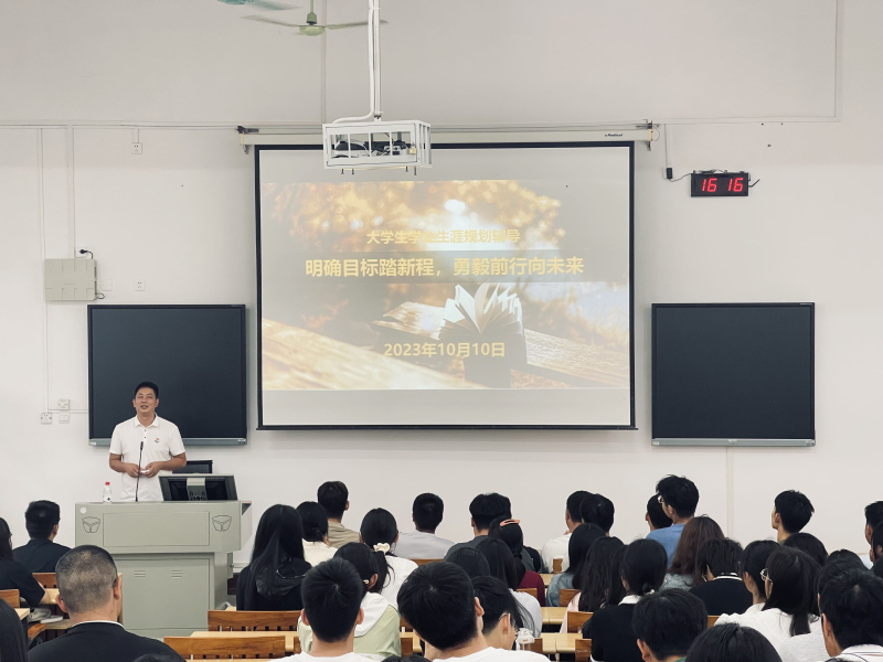 老师们围绕“明确目标踏新程,勇毅前行向未来”主题,结合党的二十大精神和习近平总书记关于青年成长成才的重要论述精神,以往届的身边的优秀学子的先进事迹为例,分别从“汲取榜样力量”、“明确奋斗目标”、“积极行动起来”等三个方面向2023级本专科新生作学业生涯规划辅导报告,教育引导同学们牢固树立“强国有我”信念,自觉厚植爱党爱国爱社会主义情怀,谋划制定好大学阶段奋斗目标,树立良好学习生活习惯,努力学好专业技能,提升综合素质,实现全面发展,不断增强自身竞争力和服务社会服务人民本领。