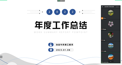 2023年1月8日晚,我系通过线上方式举行2022年度工作总结大会。系部领导班子及全体教职工参加了会议。会议由系主任何贵香主持。