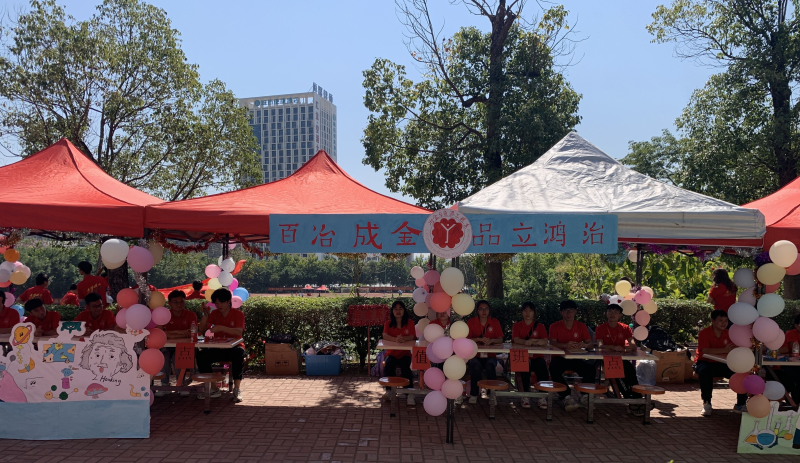 来到大本营,首先看到的是“百冶成金,品立鸿治”,这句话代表了冶金的特点。其次,再到大本营的正面和侧面设计,正面是名侦探柯南中化学实验和与科技相关人物内容;侧面是学生做化学实验和一些化学方程式还有一些玻璃仪器。采用这些元素是为了彰显我系冶金特色。