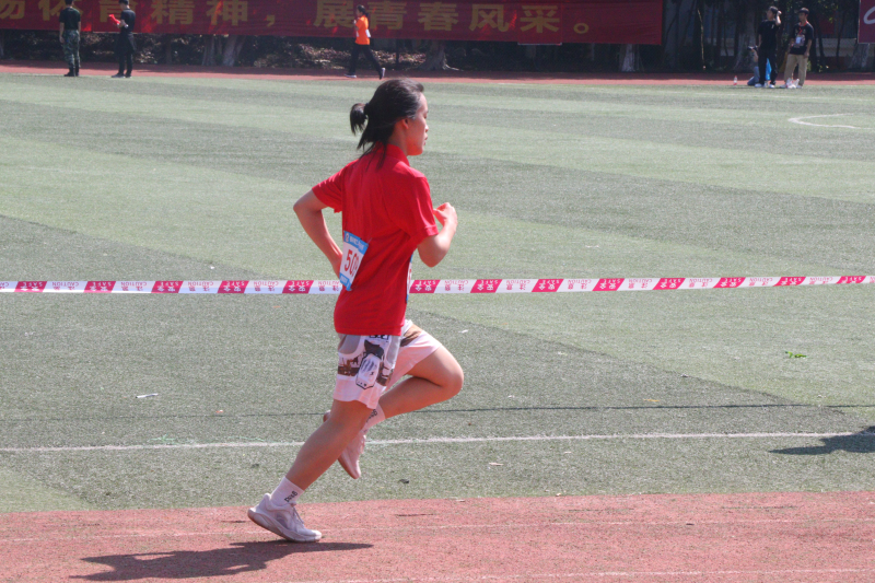 11月3日上午,女子800米的预决赛在观众的激烈呼声中准时开赛。清脆的枪声响彻天际,运动健儿们奋力奔跑,我系农秀婷起跑加速超越冲刺,一步一步跑向胜利,以2分58秒28的优秀成绩夺得800米女子组第二名。
