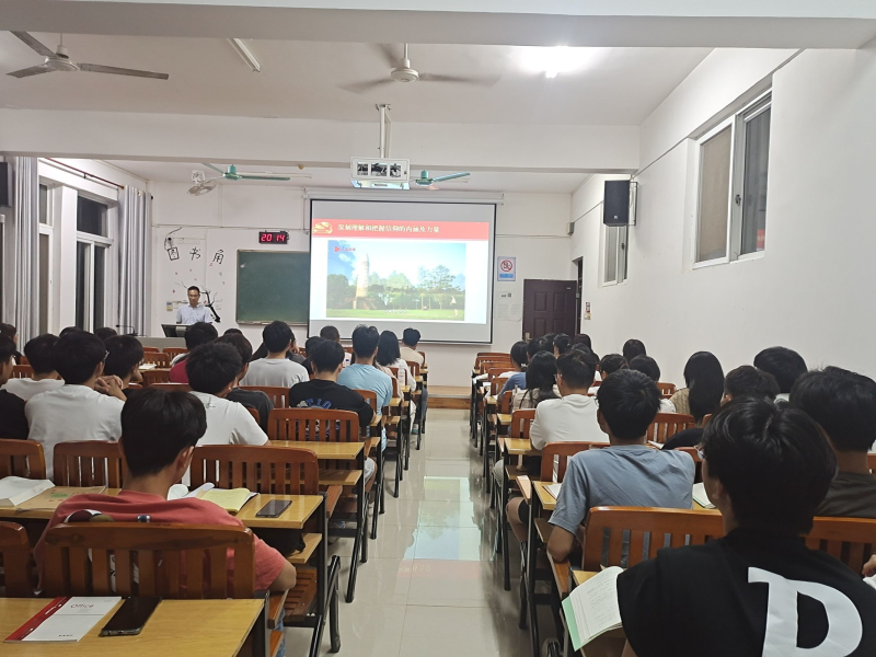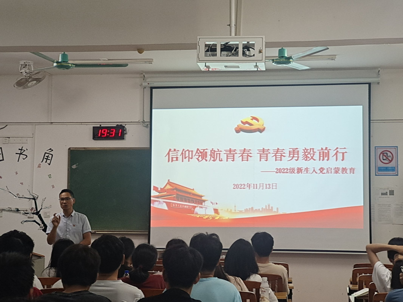 为增进2022级本科生对中国共产党的认识和了解,引导2022级本科生牢记习近平总书记殷切嘱托,争做新时代好青年,11月13日晚,我系在探源楼5204教室组织开展2022级本科生入党启蒙教育,学习贯彻党的二十大精神,教育引导2022级本科生坚定不移听党话、跟党走,以实际行动向党组织靠拢。此次入党启蒙教育由系党总支书记石有总讲授,2022级资源循环科学与工程60多名学生参加了教育活动。