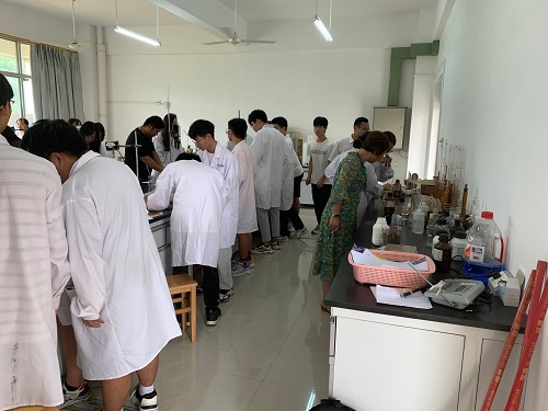 系主任何贵香和党总支书记石有总到笃行楼C座对实验室进行了安全检查,对实验室安全日常巡查台账、消防器材完好情况以及实验课操作等进行了查看,并同实验中心负责人就做好实验室规范管理、学生实验前安全教育等方面进行了交流。