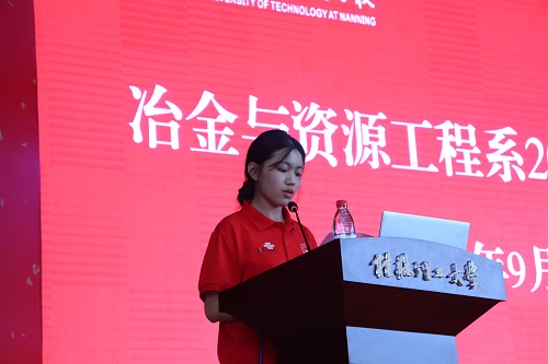国家奖学金获得者冶金工程19-本1班韦洁作为老生代表发言