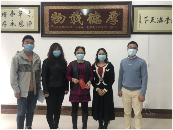 伟德国际victor·1946源自副校长、工会主席陈东莲(右二)看望慰问何贵香主任并同大家合影