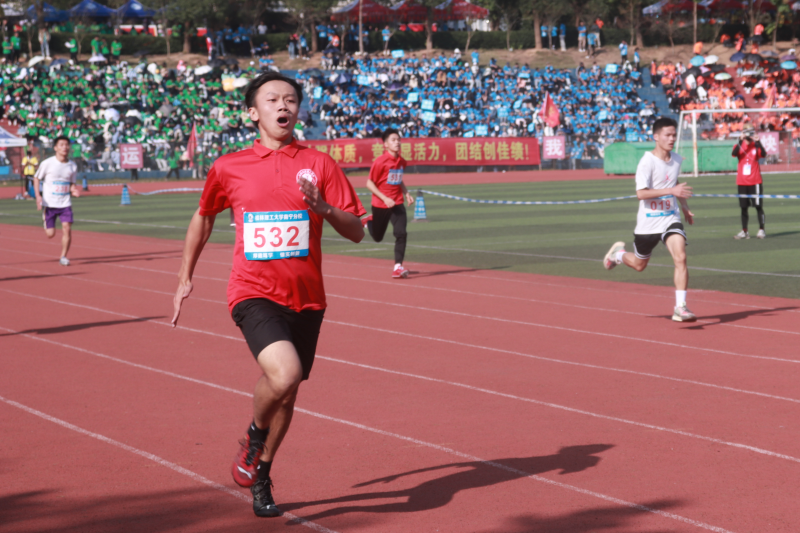 11月12日,男子400米决赛准时开赛,经过初赛的比拼成功入围决赛,决赛的开始让观众们咬紧牙关,张凯同学激情似火,时刻准备着的斗志昂扬,枪声一响,奋力奔跑,心中信念坚定,观众席上的欢呼声,加油声伴随着他,在接近终点线前拼尽全力,奋力奔跑,最终以57”32的成绩斩获男子组一名。
