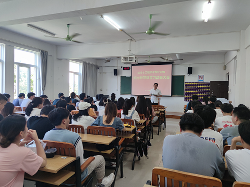 6月17日上午,我系给排水工程技术专业2019级学生跟岗暨顶岗实习动员会在1307教室召开。系团总支书记潘显鹏、环保教研室副主任黄文富及专业任课老师出席会议。