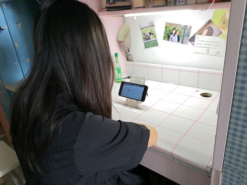 环境18-2班曾作敏同学正在收看防汛自救安全公开课