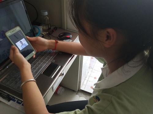 环境19-1班张圣梅同学正在收看防汛自救安全公开课