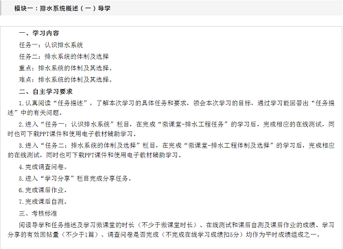 鉴于疫情契机,各大教学平台开放使用,充分收集超星泛雅、智慧职教、中国大学MOOC(爱课程)、学堂在线等教学平台的优质教学资源,进一步丰富课程教学资源。目前,《排水管网》课程教学平台有微课视频35个、在线测试试题310道、模块化PPT课件16个,借助微课堂和丰富的线上资源,教学活动平稳开展。