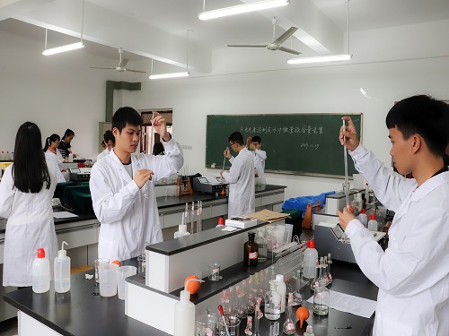 11月19日下午,我系在实训楼C505、C208实验室举办“创新杯”科技活动月“分光光度法测定水中微量铁含量”竞赛。竞赛由吴小华、林冰坚、赵佐华三位老师担任评委,共有29位学生参加竞赛。