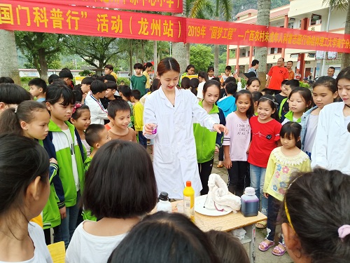 4月12日,由崇左市科学技术协会主办、分校科技部协办的“南疆国门科普行”活动在龙州县下冻镇中心小学举行。我系团总支书记方艳老师带领我系5名学生代表以志愿者的身份一同加入到此次科普宣传活动中。