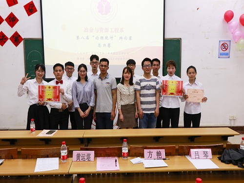 4月18日下午,我系“论理乾坤”辩论赛决赛在启智楼206教室举行,冶金18-本1班代表队成功夺冠。党总支副书记兼学工组组长黄运堪、团委书记方艳、辅导员吕琴、辅导员王震担任评委,冶金18-本1班主任任妍利及各系学生会嘉宾到场观看。