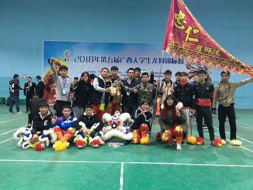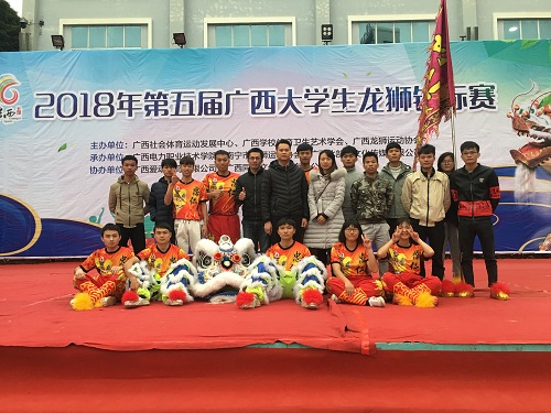 12月29日,由广西社会体育发展中心、广西体育卫生艺术学会、广西龙狮运动协会主办的2018年第五届广西大学生龙狮锦标赛,在广西电力职业技术学院隆重举行。此次参赛,由分校学工部主任韦宁照担任领队、我系党总支副书记黄运堪担任指导员,组织我系陈钦鹏、廖丕溪、梁富等16名学生代表分校参赛并获得传统南狮项目三等奖。