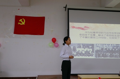 系主任何贵香在为本次主题党日活动作总结讲话。何主任首先对大家平常关注关心国家发展大事的情况给予了充分的肯定,教育和引导大家心系祖国,坚定“四个自信”,践行社会主义核心价值观,以为“中华民族之崛起而读书”的壮志,努力学好专业技能和提升综合素质,不断增强才干和本领,积极响应国家的号召,脚踏实地,多作贡献,在实现中华民族伟大复兴的中国梦中实现出彩人生。