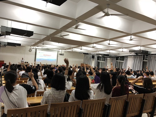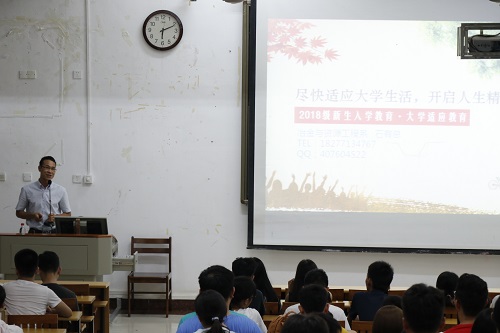 9月10日20:00,我系党总支书记石有总为新生上一堂精彩纷呈的适应教育课。石书记首先从“大学新生面临哪些不适应?”、“大学新生为什么出现适应性问题?”两个问题切入,详细、生动地为新生解答了以上疑问,让新生能够准确认识到自身的不适应症状及其产生的原因。接着,石书记引导新生主动调整生活和学习方式,调整人际关系,鼓励大家面对新生活要坚持自强自立,乐观向上,积极适应新的生活。