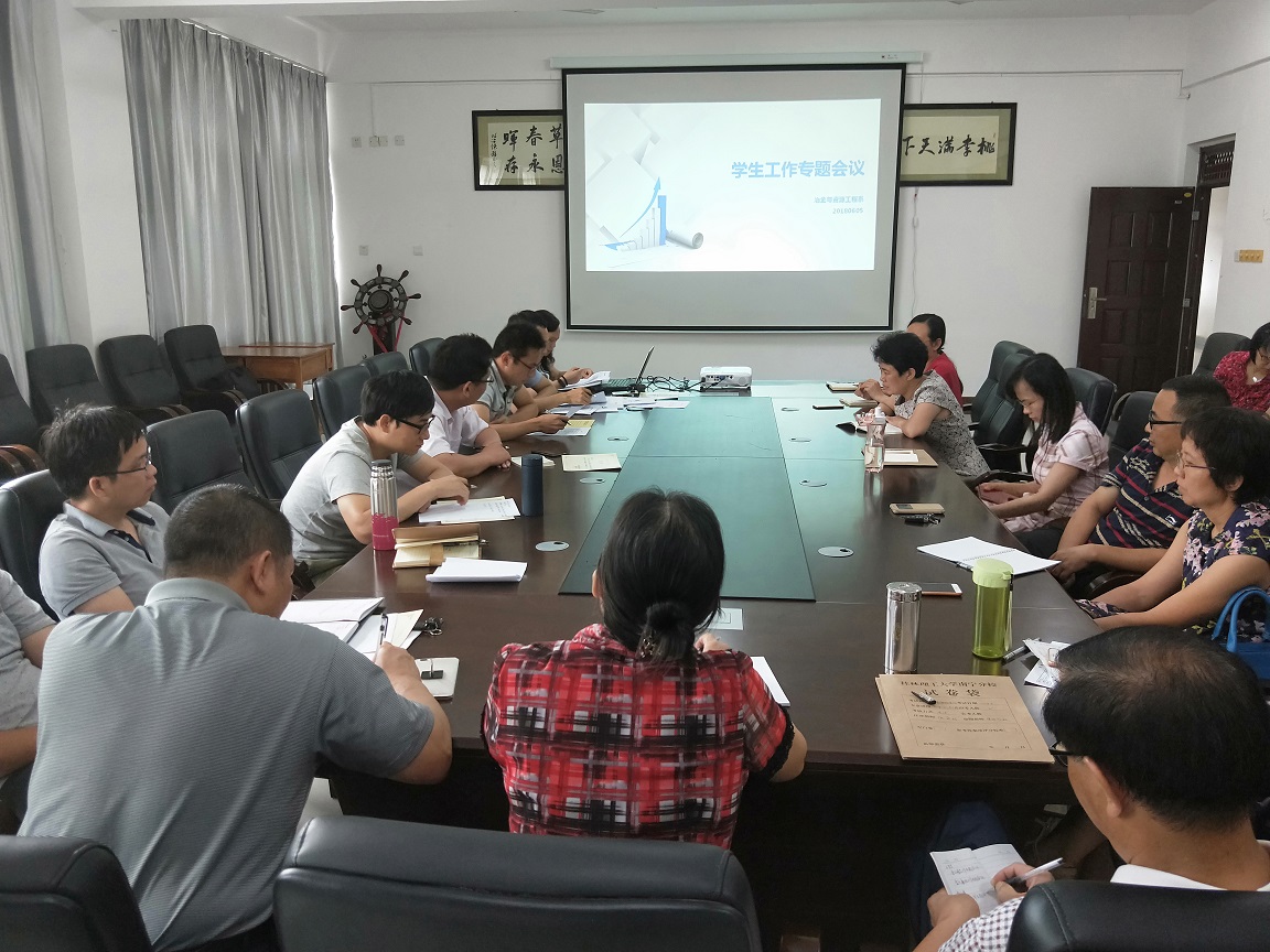 6月5日下午,我系在探源楼5207会议室召开学生工作专题会议,提高安全稳定工作责任意识,明确工作要求,就落细落实各项安全工作进行了强调部署。会议由党总支副书记兼学工组组长黄运堪主持,全体教职工参加了会议。