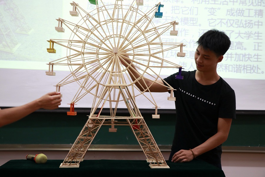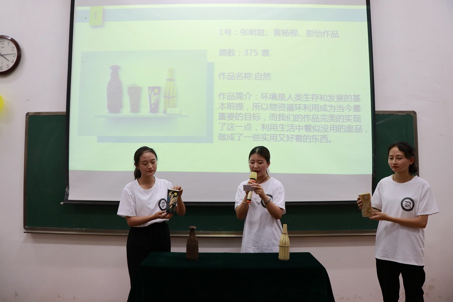 本次环保手工设计制作大赛得到了广大学生积极响应,共征集到57件(组)作品。经过前期的易班网络人气投票和初赛选拔,共有29件(组)优秀作品入围决赛。在比赛中,各参赛者结合PPT和环保手工设计制作实物,主要从作品的设计思路、设计理念、制作材料及工艺等进行详细解说。