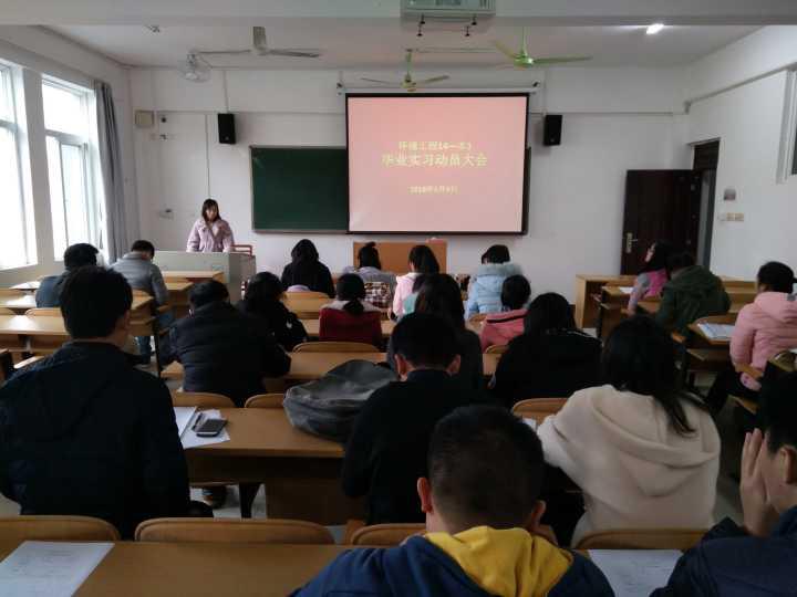 1月9日下午,我系组织环境工程专业2014-1班在践行楼2306教室召开毕业实习动员会。系党总支副书记兼学工组长黄运堪应邀参加,并作实习动员讲话,环境保护教研室全体教师以及环境工程2014- 1班全体学生参加了动员会。动员会由教研室主任梁宁主持。