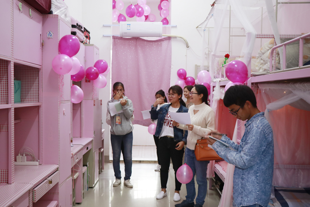 为营造良好的宿舍文化氛围,提高我系学生的综合素质,我系举办了“我们在一起,共创温馨宿舍”为主题的宿舍文化节活动。此次活动分为两个环节,即第一环节根据参赛宿舍的整体装扮及特色进行现场评分,第二环节由评选出的若干宿舍进行宿舍风采展示,最终根据两个环节的最终成绩评定星级宿舍等级。