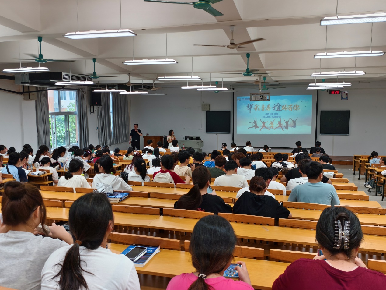 会后,广西华谊氯碱化工有限公司党总支副书记、工会主席、综合部经理张彤一行还同2022级化工、分析、环境等专业学生在启智楼8208D教室进行交流招聘。