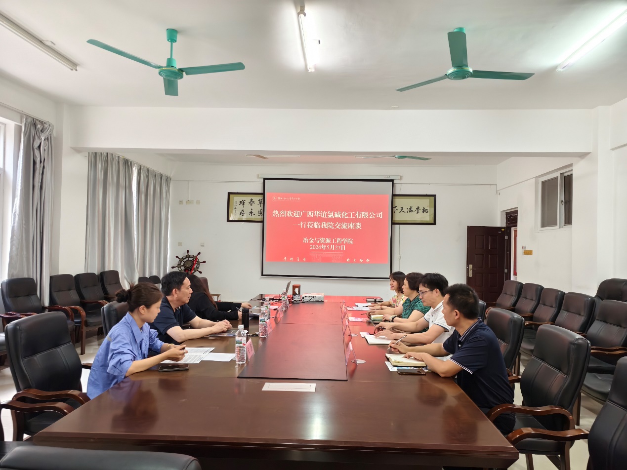 5月27日下午,我院在探源楼5207会议室同来访的广西华谊氯碱化工有限公司党总支副书记、工会主席、综合部经理张彤一行3人进行了校企合作座谈交流。学院党委书记韦国才,党委副书记、院长何贵香,党委副书记兼学工组长方艳,副院长卢友志出席此次座谈交流会。