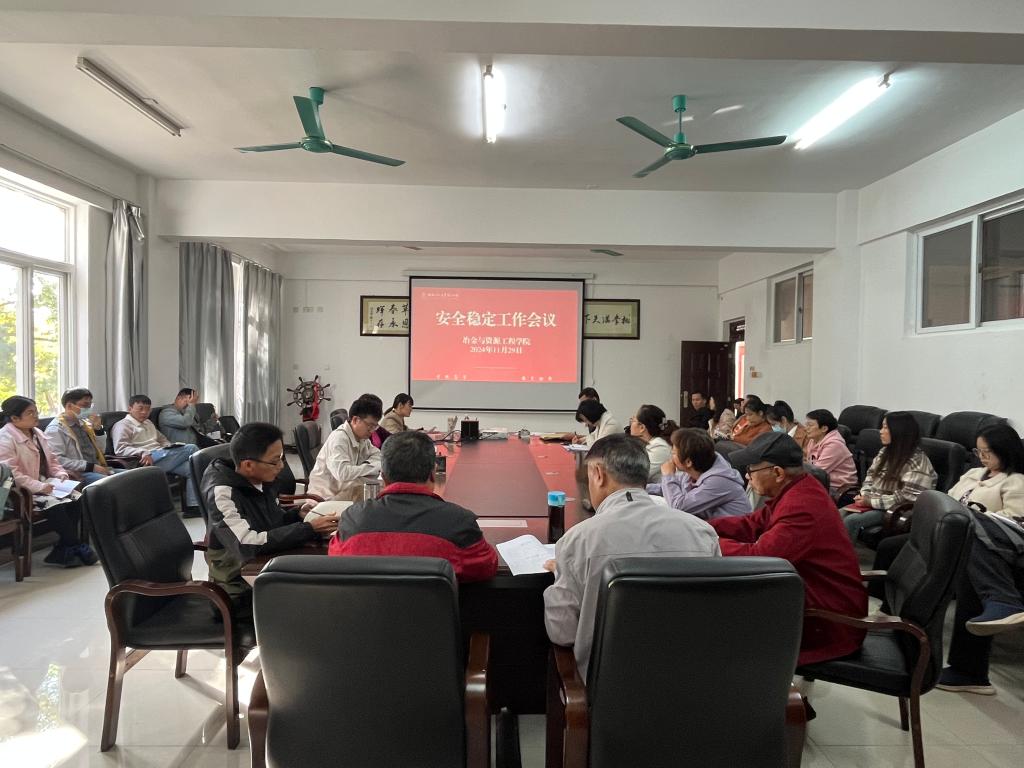 11月29日,我院于探源楼5207室召开安全稳定工作会议。冶金学院全体教职工参加会议。