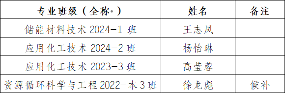 根据上级和学校有关文件要求,我院2024-2025学年本专科生国家奖学金院内推荐工作已经完成,经学生个人申请,班主任、辅导员推荐,学院国家奖助学金评审小组研究,拟推荐学生3名,其中候补学生1名。现将学院拟推荐名单公示如下,公示期为3天。